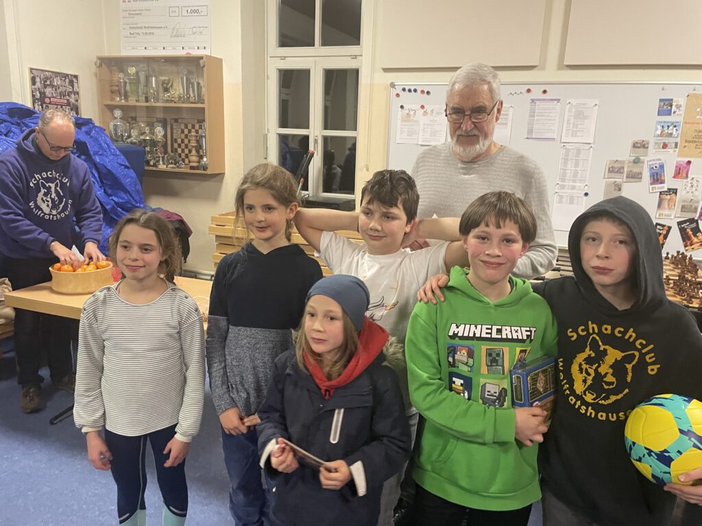 21 Kinder und Jugendliche spielten ab 18:00 Uhr, und gar 31 beteiligen sich ab 19:45 am Turnier für die Erwachsenen. Unter der bewährten Leitung von Klaus Grießbach gab es für alle Teilnehmenden einen Preis und leckere Verpflegung. Erstmals kam dabei die neue Bedenkzeitregel „3 Minuten plus 2 Sekunden Bonus pro Zug“ zum tragen!