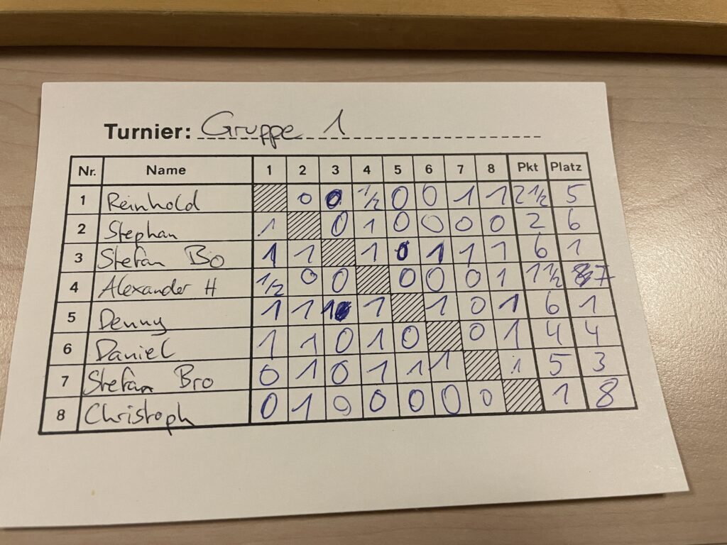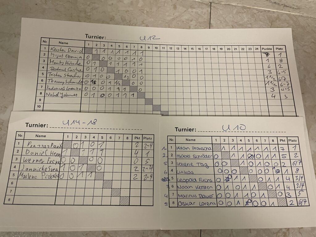 Hier die Abschlusstabellen der Vor-und Endrunden der Erwachsenen. Die Tabellen der Jugendlichen siehe bitte unten bei den Fotos.