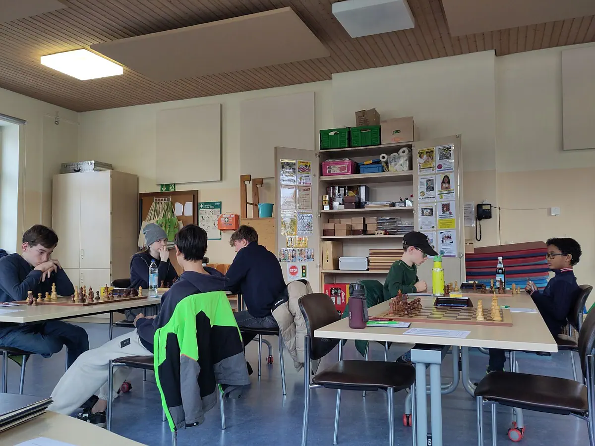 Am stärksten 1. Brett zeigte unsere amtierende oberbayerische Meisterin Svea Jannicke wie man auch gegen einen sehr starken Leander Würzinger (3. bei der KEM vor einer Woche – 436 DWZ mehr) ein Remis hält. Beide kennen sich von vielen KEMs und OBBs und wissen wie der Gegner spielt. Es wurde lang rochiert und sehr genau auf die Figurenentwicklung geschaut, bevor es nach 47 Minuten doch zum ersten Abtausch kam: Sveas Springer für Leanders Läufer. Leander startete zwar einen weißen Bauernsturm am Königsflügel, zu einem weitern Abtausch kam es allerdings erst in der 82. Minute (Springer gegen Springer) gefolgt von einem erneuten Springer für Läufer nach 120 Minuten. Schließlich einigte man sich nach 2h und 15 Minuten auf ein faires Remis. Sehr chillig, Svea!