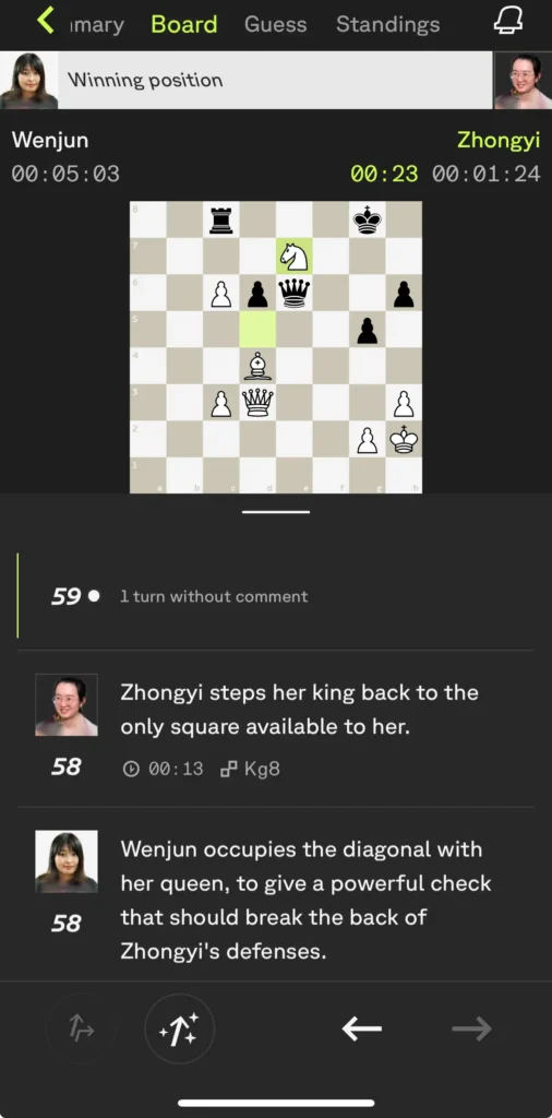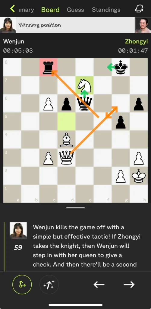 Normalerweise machen wir hier ja keine Werbung für irgendwas, aber „Take Take Take“ ist eine App, die es interessierten Schachfreunden ermöglicht, interessante Turniere live zu verfolgen. So zum Beispiel die aktuelle Weltmeisterschaft der Frauen oder das gerade laufende Feestyleturnier in Paris. In vielen Partien werden Züge und Stellungen – ich vermute mit KI – analysiert und kommentiert (siehe nachstehende Beispiele). Für Lernende aber auch Erfahrene vielleicht eine interessante Option, Weltklasseschach live zu verfolgen?!