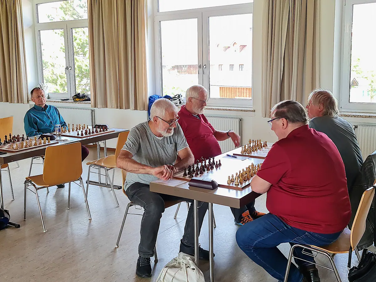 In der heutigen 7. und letzten Runde der Ü55-Seniorenkreisliga 2024/25 haben wir zum guten Abschluß noch einmal auswärts in Weilheim-Marnbach gepunktet, und ein Mannschafts-Unentschieden gegen das nominell etwas stärkere zweite Team von Weilheim mit nach Hause gebracht. Damit beenden wir unsere Saison auf dem (exakt mittleren!) 4. Platz (von 7 Mannschaften) und sieben Mannschaftspunkten. Unsere Bilanz mit zwei Siegen, einem Unentschieden und drei Niederlagen bleibt damit doch ein wenig hinter den Dauererfolgen der letzten Jahre zurück. Aber in jeder Saison den Titel zu holen wäre vielleicht auch etwas zu viel erwartet…