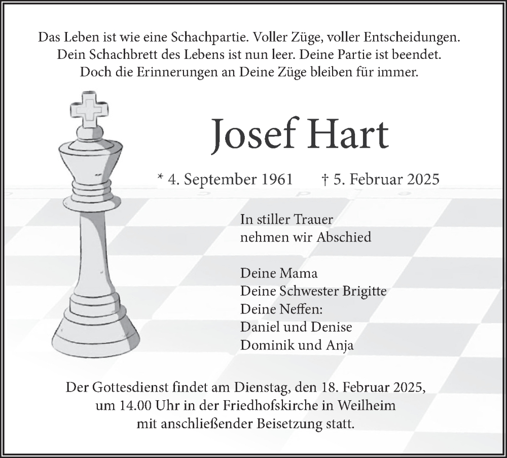 Wir haben heute davon erfahren und trauern mit den Freunden aus Weilheim um Josef „Sepp“ Hart, der am 5. Februar verstorben ist.